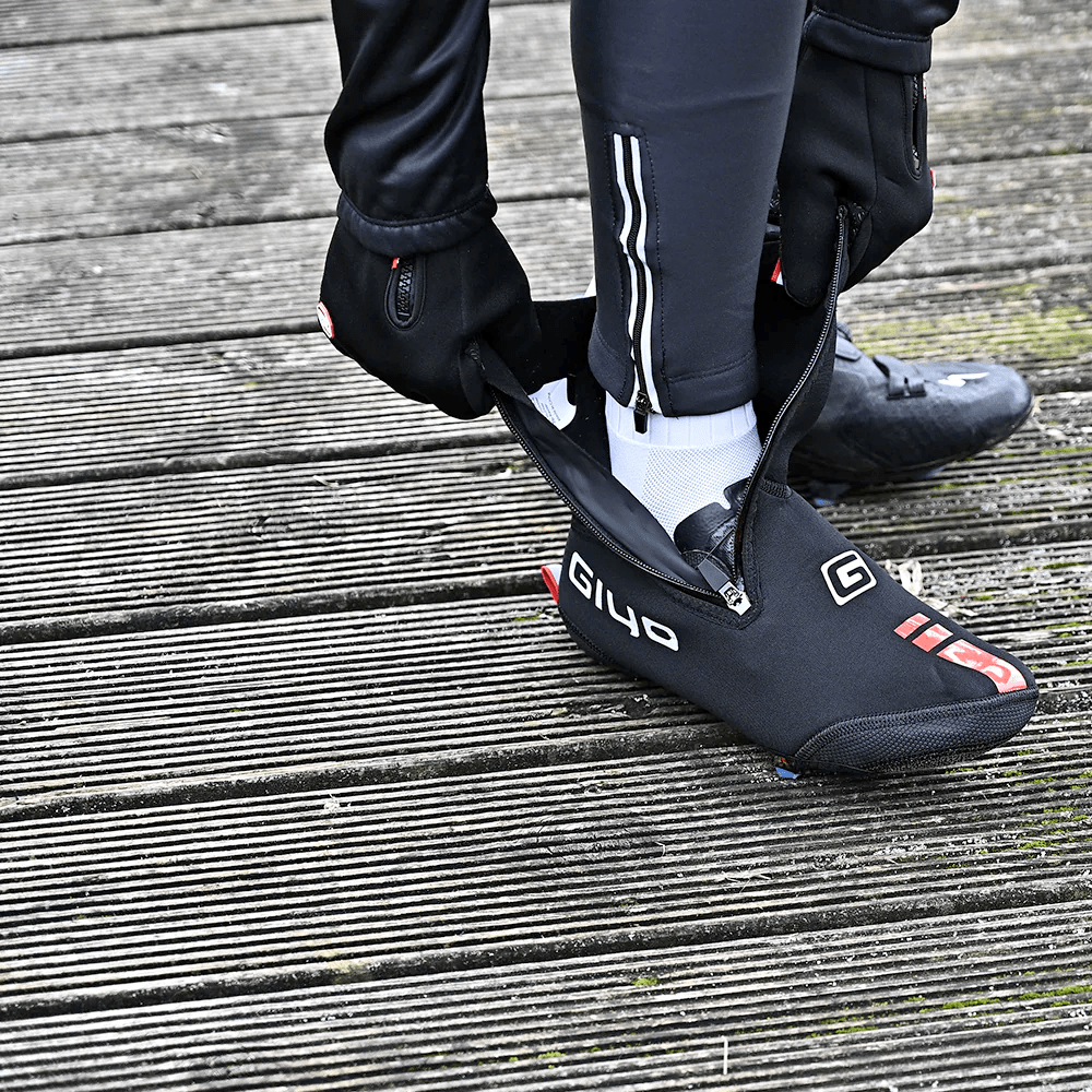 - Protéger ses mains et ses pieds : Les gants et les sur-chaussures sont indispensables pour prévenir les engourdissements dus au vent et à la vitesse. J’apprécie particulièrement les chaussettes en mérinos (on en trouve chez Décathlon). Une astuce également : sacrifiez une couverture de survie pour la découper et mettre un morceau qui couvre vos orteils (à l’extérieur de la chaussette). Pensez également aux sur-chaussures en néoprène et aux gants hivers (tout les gants longs ne se valent pas). Pensez y : l’air est votre ami, donc un gant trop petit vous protégera moins, il doit y avoir une couche d’air dans le gant.